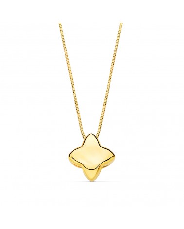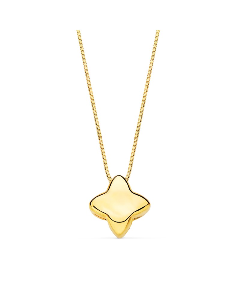 Collar de oro amarillo de 18 kilates con una estrella lisa de unos 6,5 mm y una cadena veneciana con un alargador de 3 cm. Este collar tiene un largo de 42cm. El collar forma parte de la colección de oro de Falomir Joyas, y se entrega con estuche y marca de contraste oficial.