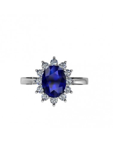 Sortija de oro blanco de 18k cuajo con con con diamantes 0.42 qts. Zafiro 8x6 mm 1.63 qts. Talla brillante.