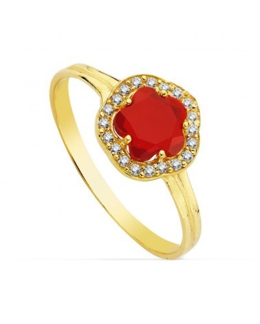 Sortija de 9k de flor piedra roja 6mm circonitas