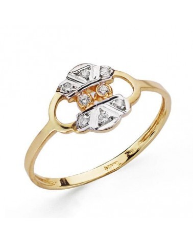 Fabricada en oro de 18 quilates bicolor con un acabado pulido que resalta la calidad de los materiales, esta sortija cuenta con un ancho de 9 mm que le confiere presencia y elegancia en la mano. Su peso aproximado de 1,2 gramos proporciona una sensación cómoda de llevar, mientras que las circonitas añaden ese toque de brillo que hace especial a esta joya.
