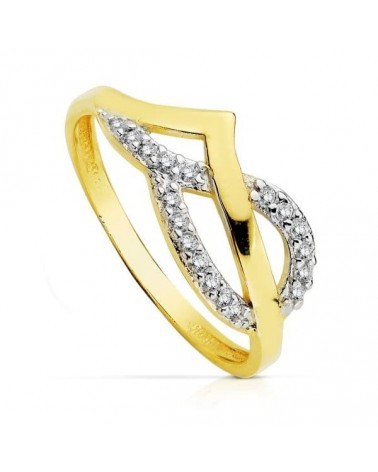 Sortija oro 18k bicolor circonitas ancho 8mm