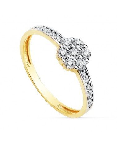 Sortija oro 18k bicolor roseta circonitas 6x6 mm
