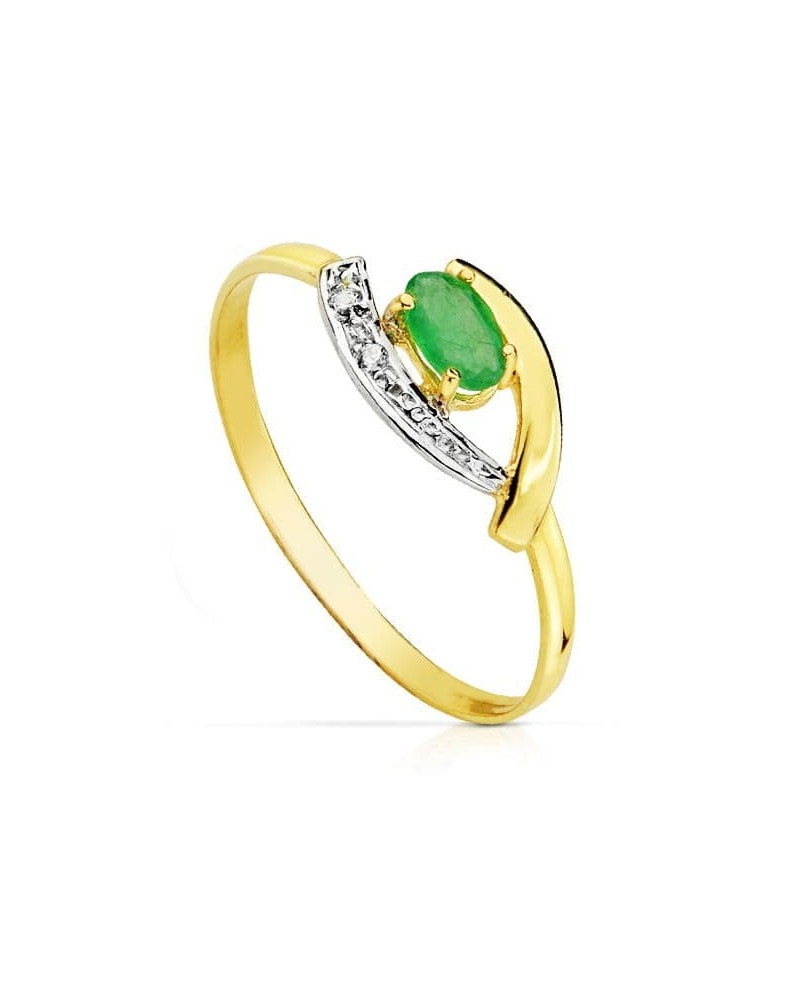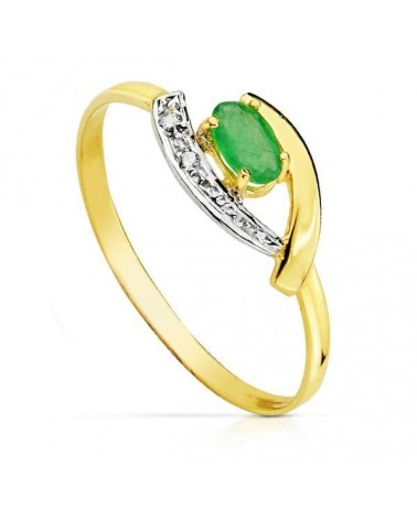 Sortija oro 18k bicolor esmeralda 5x3 mm