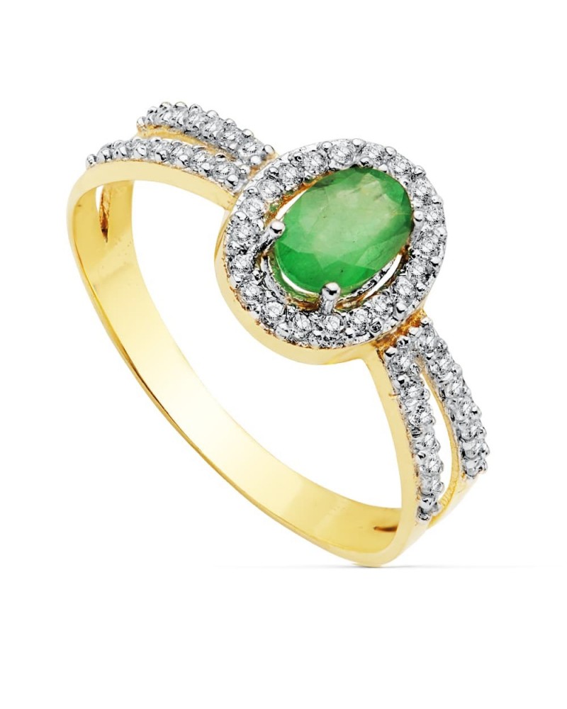 Sortija oro 18k bicolor esmeralda oval circonitas