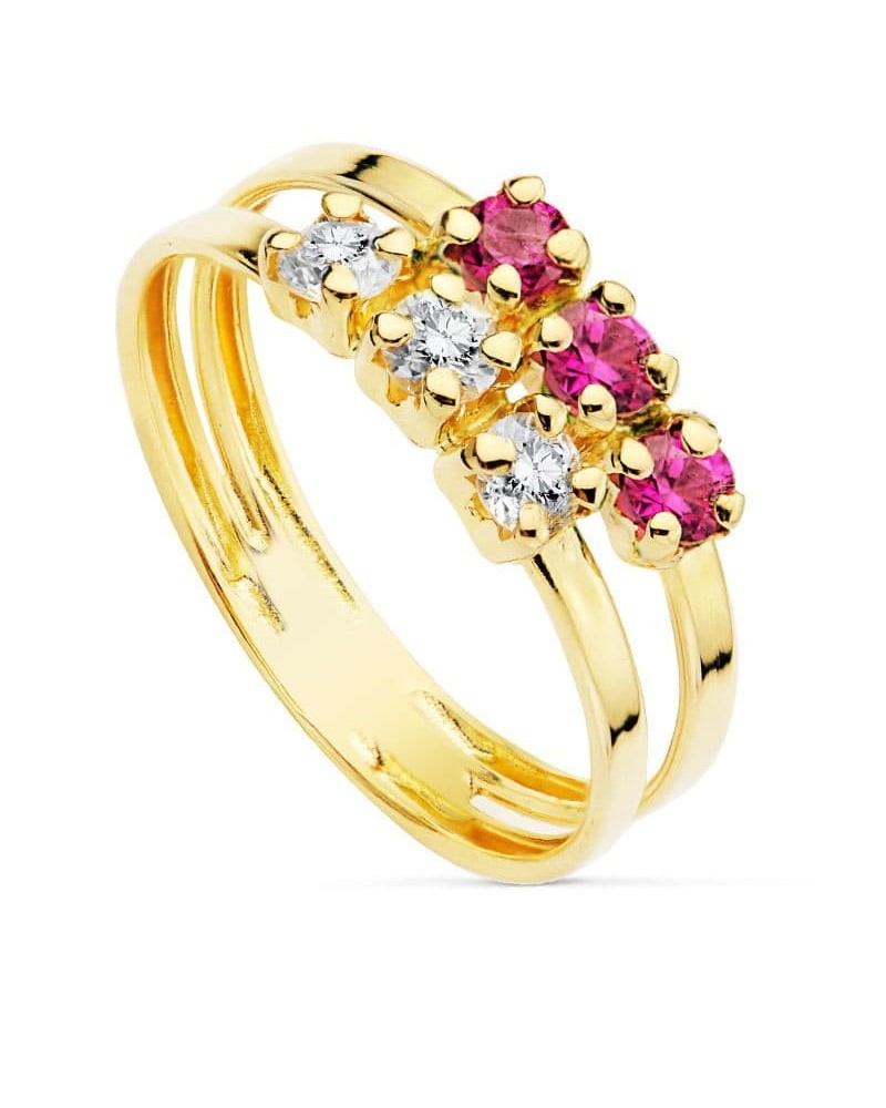 Sortija oro 18k amarillo circonitas rojas y blancas
