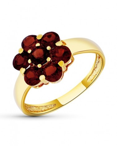 Sortija oro 18k amarillo flor granates 11mm
