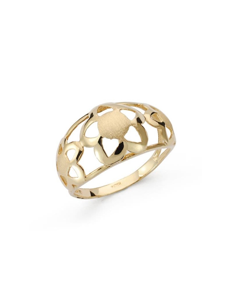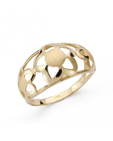 Sortija oro 18k amarillo calada flores mate brillo 11mm