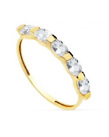 Anillo oro amarillo 18k cinco piedras ovaladas 4x3 mm