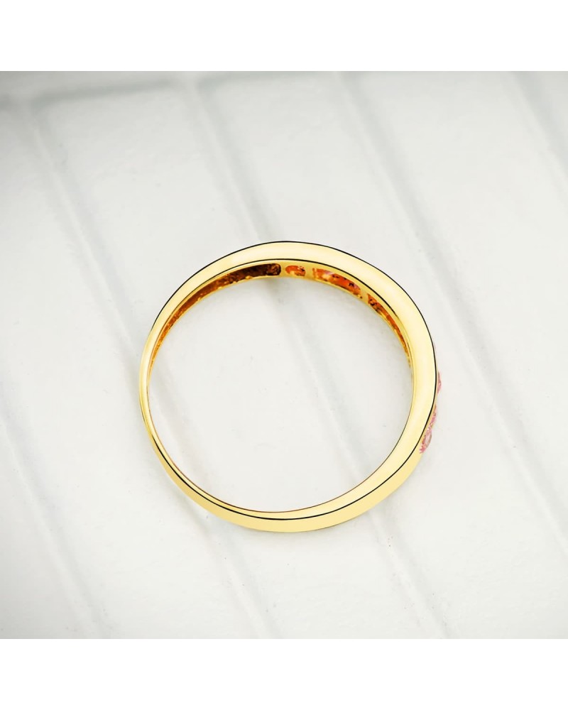 Confeccionada en oro amarillo de 18 kilates con marca de contraste 750, esta sortija cuenta con un ancho de cuerpo de 3,5 mm que proporciona presencia sin resultar excesiva. Las circonitas están perfectamente calibradas y engastadas con precisión artesanal. Su peso aproximado de 1,6 gramos la convierte en una pieza cómoda para el uso diario.