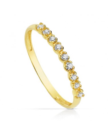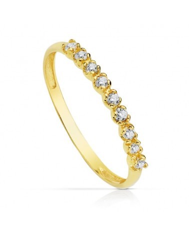 Anillo oro amarillo 18k nueve circonitas grosor 2 mm