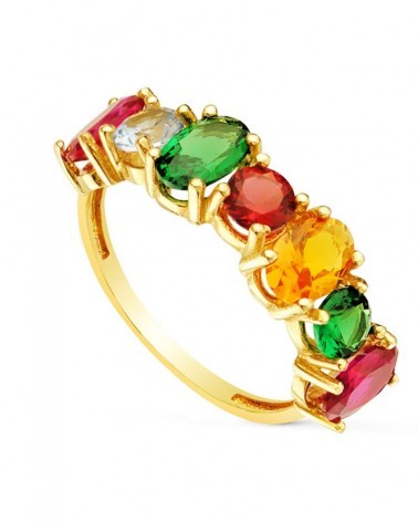 Sortija oro 18k amarillo piedras colores multicolor 6mm