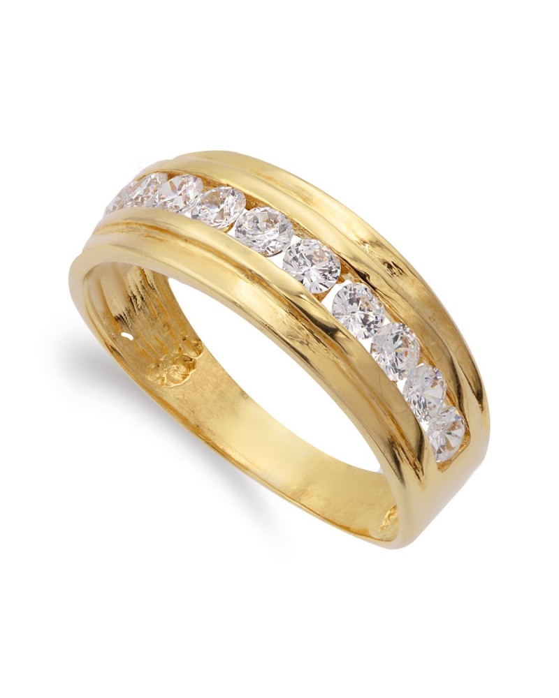 Sortija oro amarillo 18k circonita carril 7mm