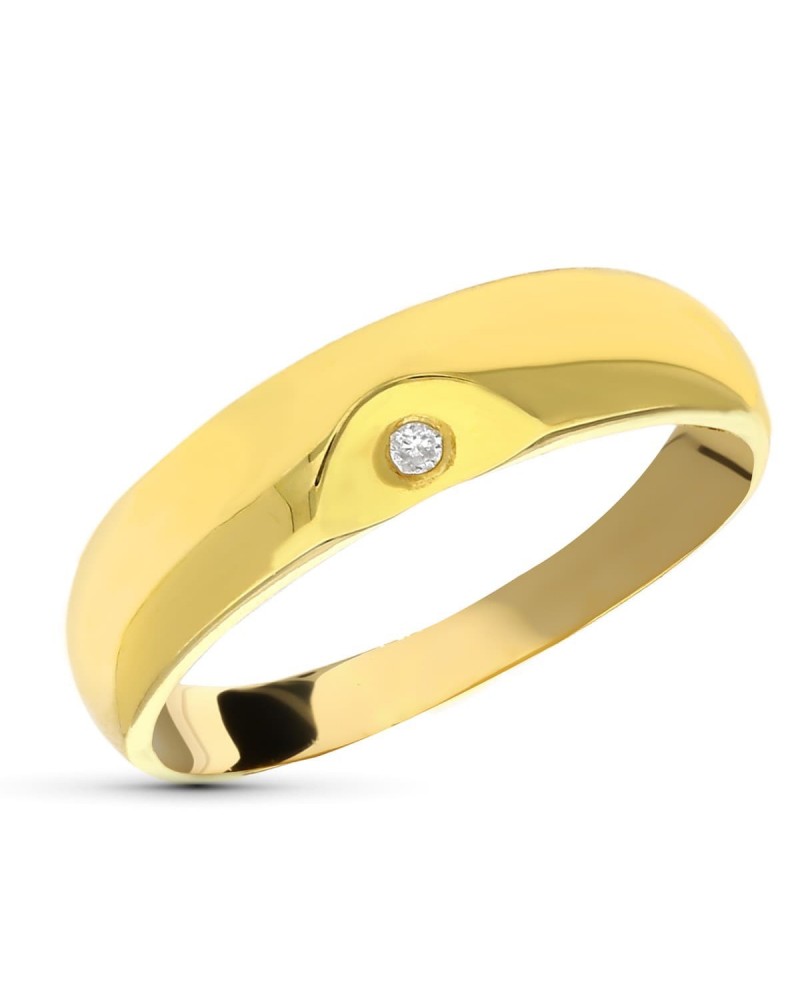 Fabricada en oro amarillo de 18 quilates con un diamante engastado de forma segura. Con 5 mm de ancho y peso aproximado 1,7 gramos, ofrece una presencia notable sin resultar excesiva. El diamante aporta ese toque de luz y elegancia que hace especial a esta pieza, mientras que el oro de 18 quilates garantiza durabilidad y belleza duradera.