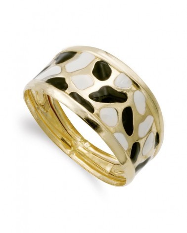 Sortija oro 18k amarillo esmaltada marfil negro 11mm