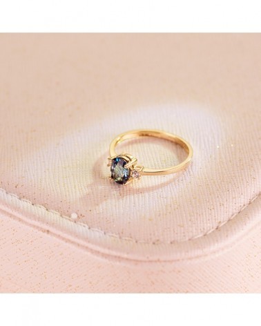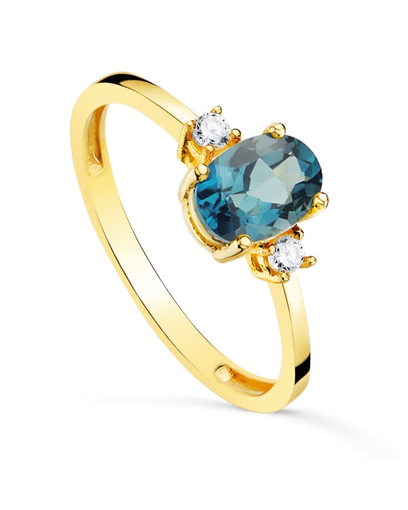 Sortija oro 18k piedra azul oval circonitas
