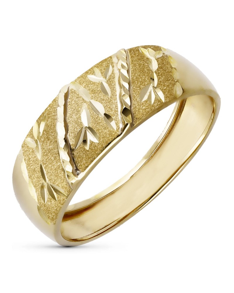 Sortija oro 18k amarillo tallada motivos florales 10,5mm