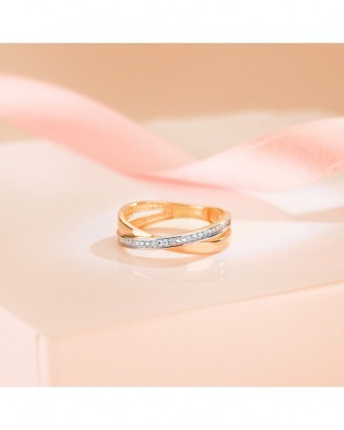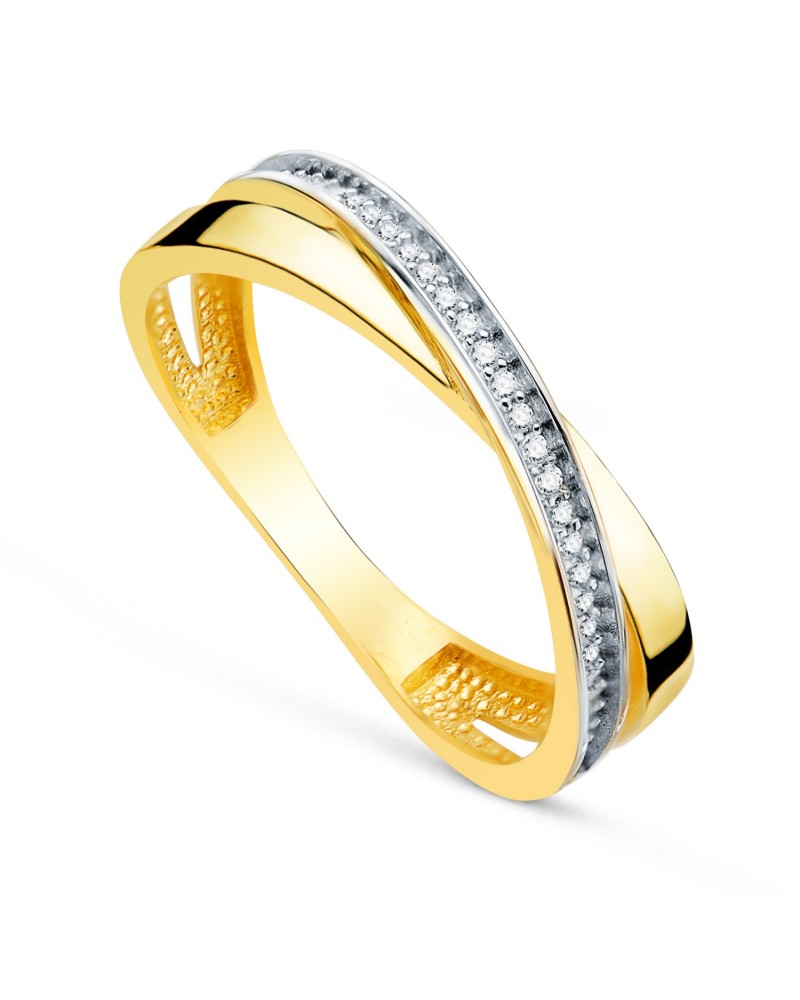 Sortija oro 18k bicolor banda cruzada circonitas 4mm