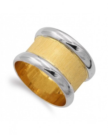 Sortija oro 18k bicolor bandas mate y brillo 12mm