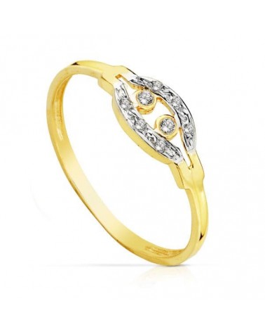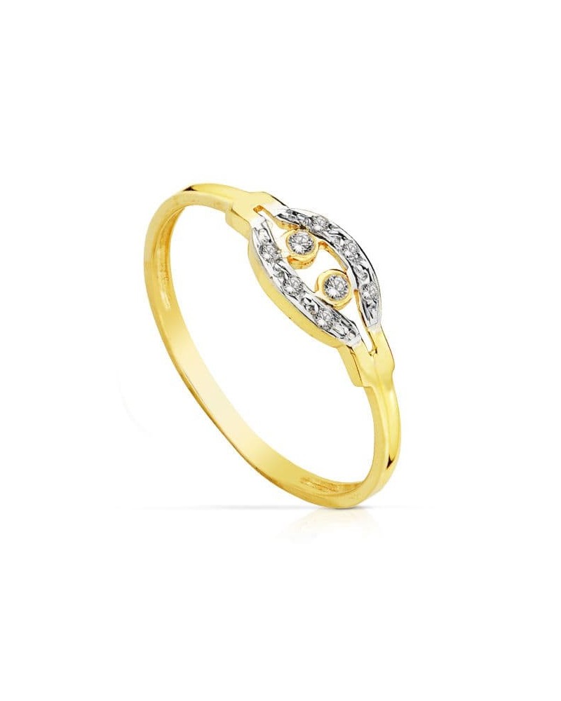Sortija oro 18k bicolor circonitas diseño ondulado