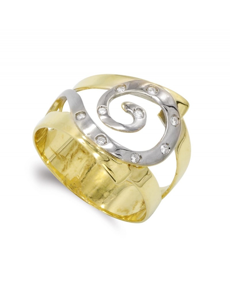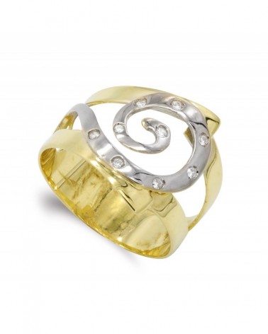 Sortija oro 18k bicolor espiral circonitas 17mm