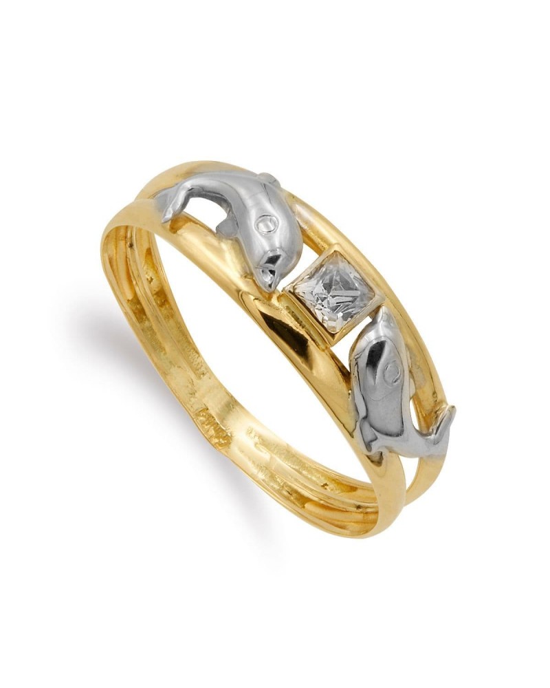 Sortija oro 18k bicolor delfines circonita 6mm