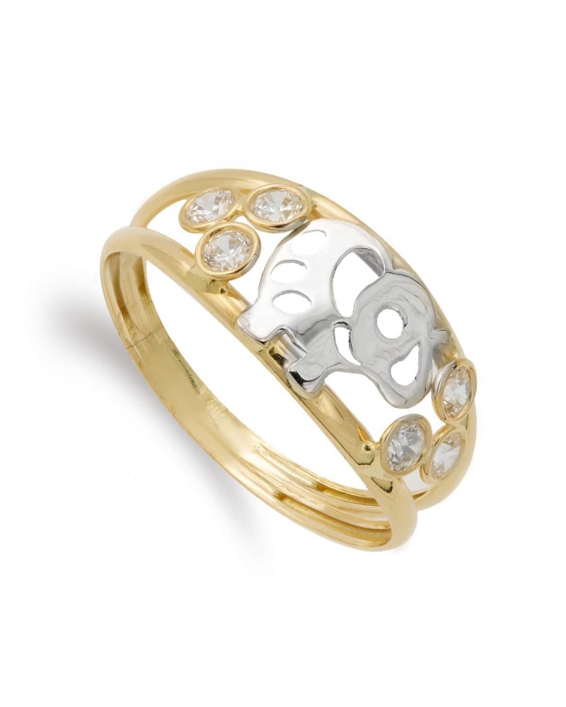 Anillo oro 18k bicolor elefante circonitas 7mm