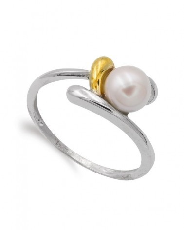 Sortija oro 18k bicolor perla 6,5 mm