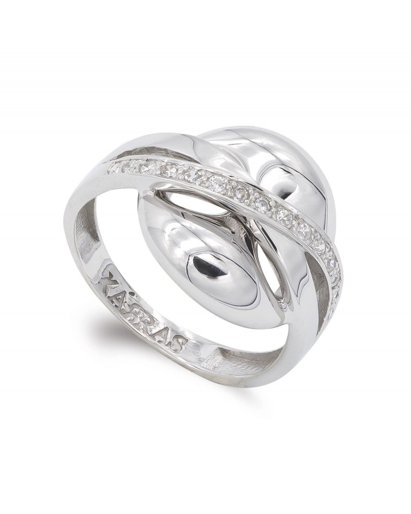 Sortija oro blanco 18k diseño entrelazado circonitas 15,5mm