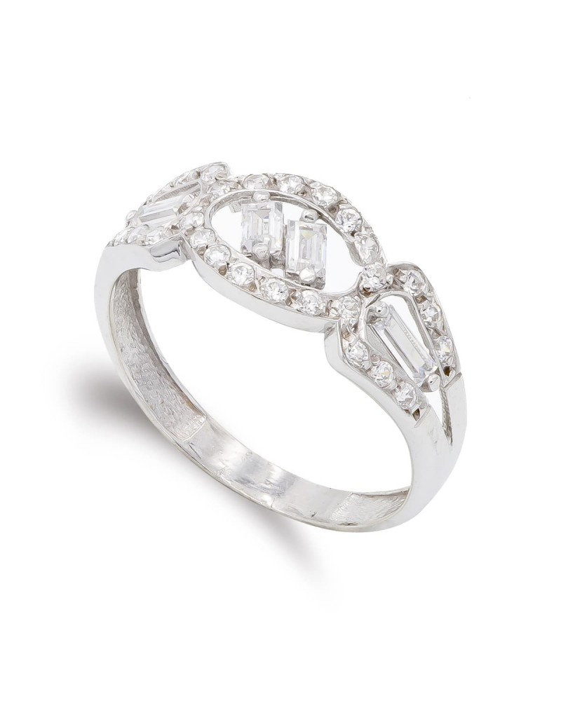 Sortija oro blanco 18k circonitas diseño moderno 8mm