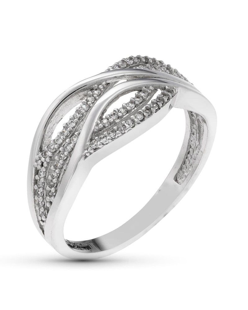 Sortija oro blanco 18k circonitas diseño entrecruzado 8mm