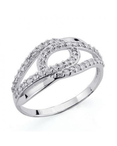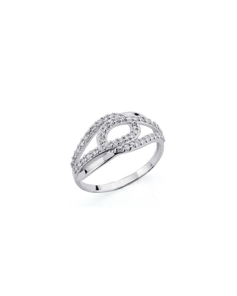 Sortija oro blanco 18k circonitas diseño entrelazado 9mm