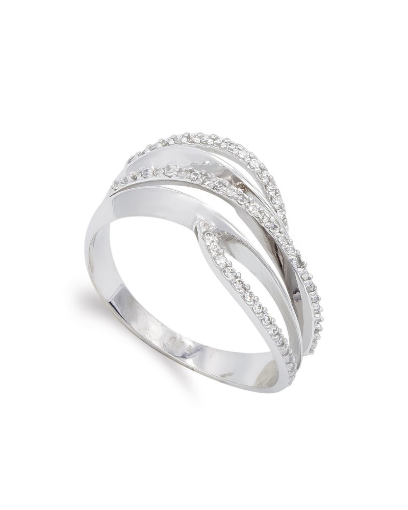 Sortija oro blanco 18k circonitas diseño entrelazado 9mm