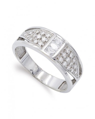Sortija oro blanco 18k circonitas diseño geométrico 7mm