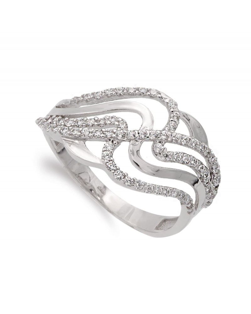 Sortija oro blanco 18k circonitas diseño ondulado 12mm