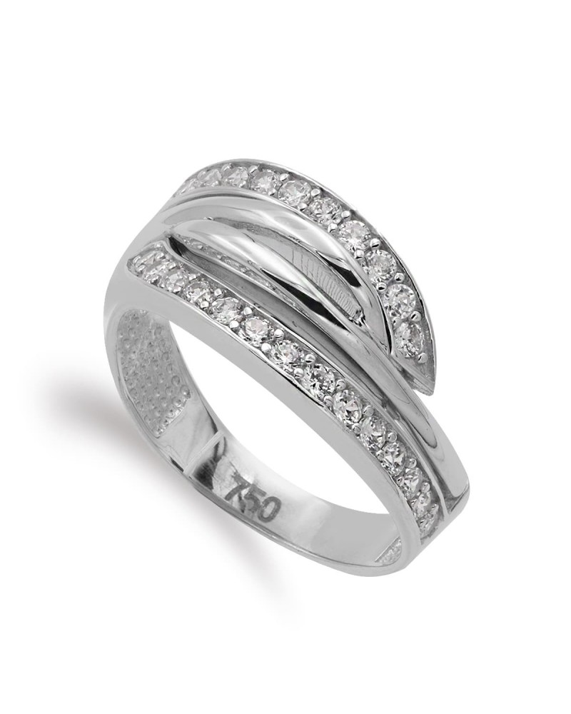 Sortija oro blanco 18k circonitas diseño moderno 10mm