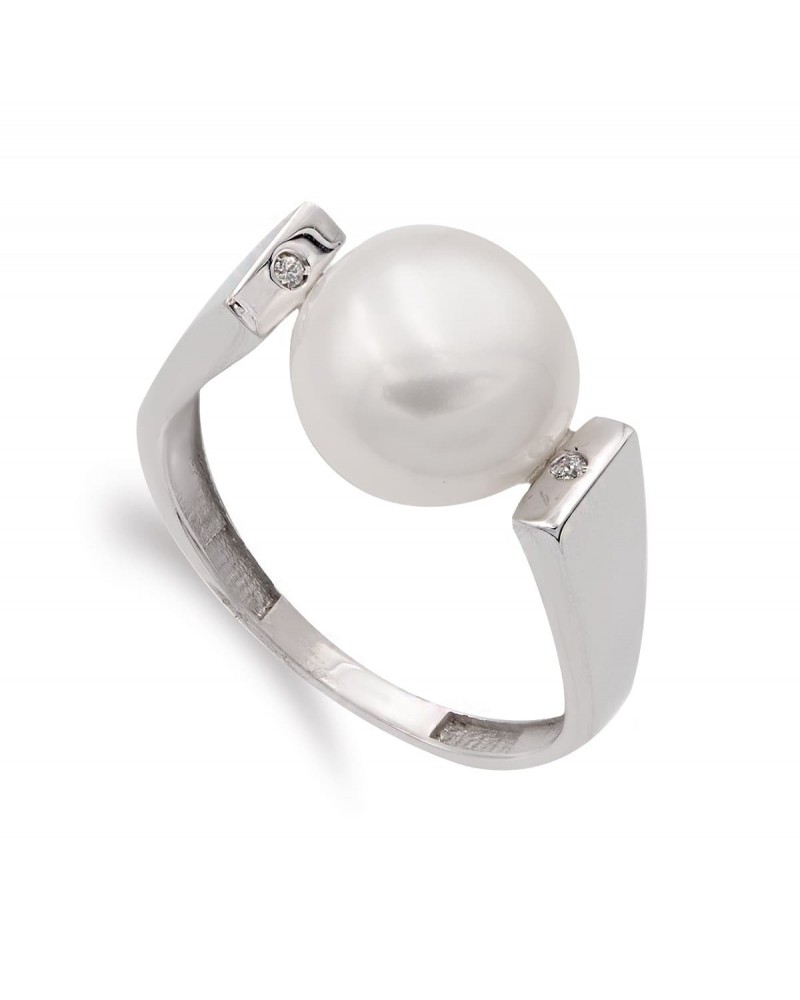 Sortija oro blanco 18k perla barroca circonitas 11mm