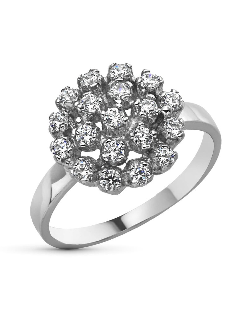 Sortija de oro blanco de 18k cuajo circonita ancho 13 mm cuerpo 3 mm