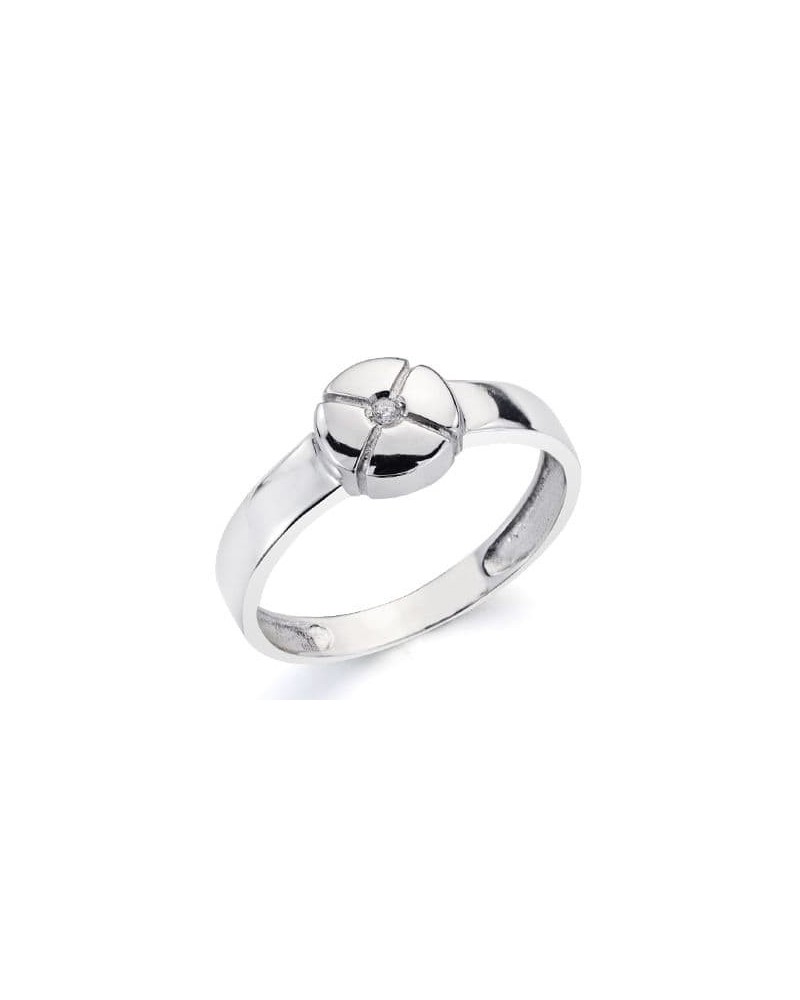 Elegante sortija de oro blanco de 18 quilates con diseño de flor de cuatro pétalos y diamante central. Con un ancho de 7 mm y peso aproximado de 2,4 gramos, esta sortija combina el brillo del oro blanco con la elegancia del diamante en un diseño floral atemporal.