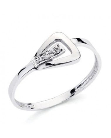 Sortija oro blanco 18k diamante talla brillante triangular