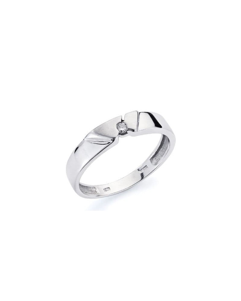 Esta elegante sortija presenta un diseño contemporáneo en oro blanco de 18 kilates con acabado pulido brillante. Su característica principal es el diamante talla brillante central, perfectamente engastado en un diseño que combina líneas limpias con un toque de sofisticación. El aro presenta una forma ergonómica que se adapta cómodamente al dedo.