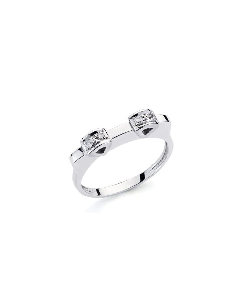 Elegante sortija de oro blanco de 18 quilates con diamantes naturales en talla brillante de 0,10 quilates totales, con peso aproximado 3,7 gramos. Su diseño moderno presenta dos secciones destacadas que realzan el brillo de los diamantes sobre el pulido oro blanco.