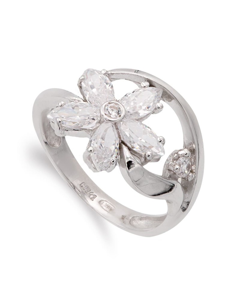 Sortija oro blanco 18k flor circonitas 13mm