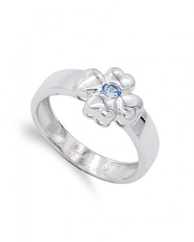 Sortija oro blanco 18k trébol circonita 10mm