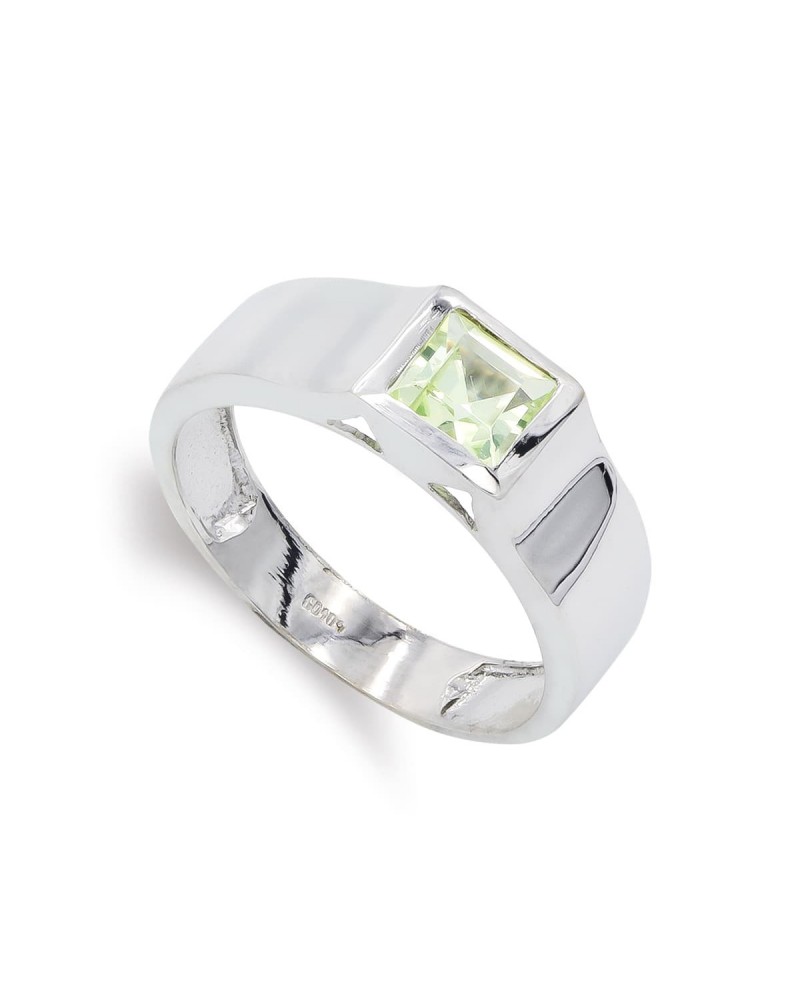 Sortija oro blanco 18k olivina engaste rectangular 6mm