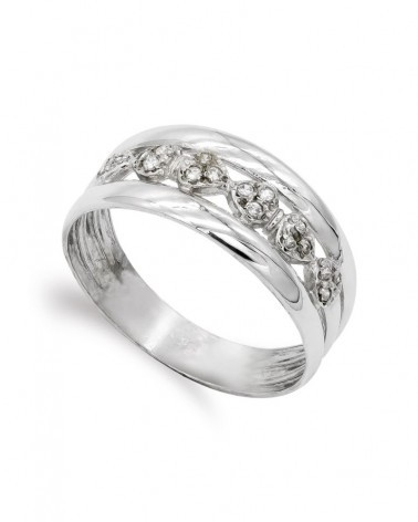Sortija oro blanco 18k circonitas entrelazadas 9mm