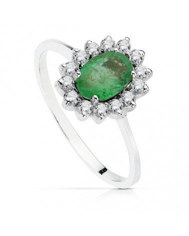 Sortija oro blanco 18k esmeralda circonitas 7x5mm