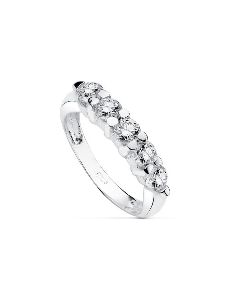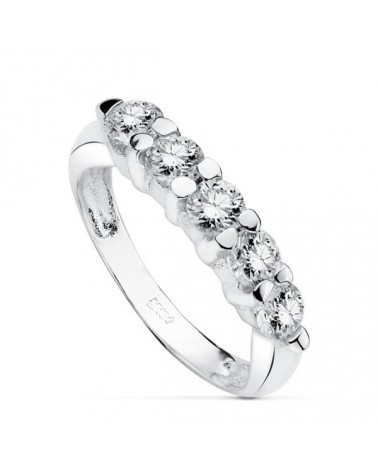 Sortija oro 18k blanco cinco circonitas 4mm