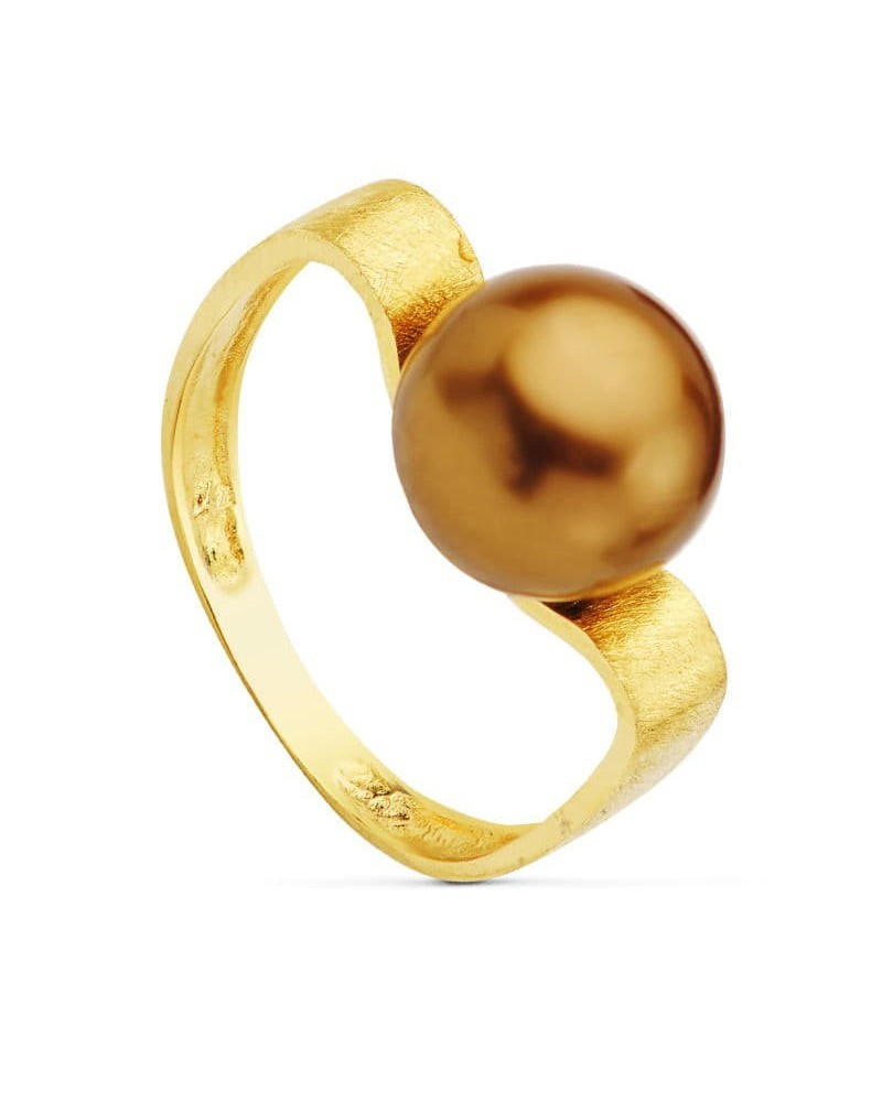 Sortija oro 18k perla chocolate 10 mm