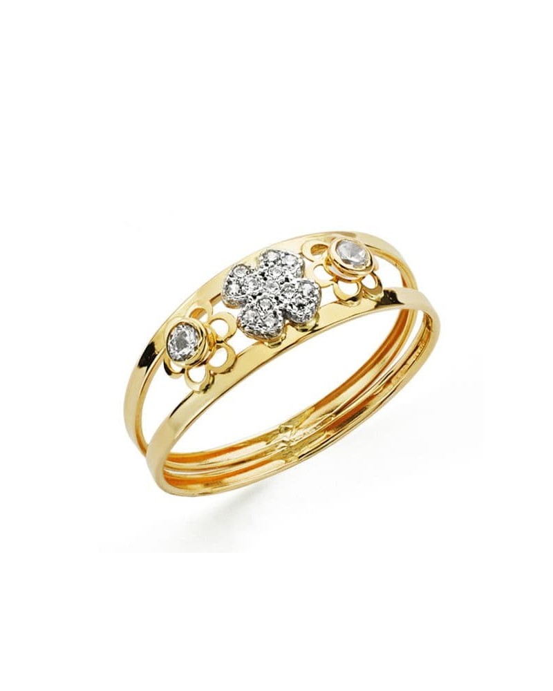 Sortija oro 18k bicolor flores circonitas ancho 7mm