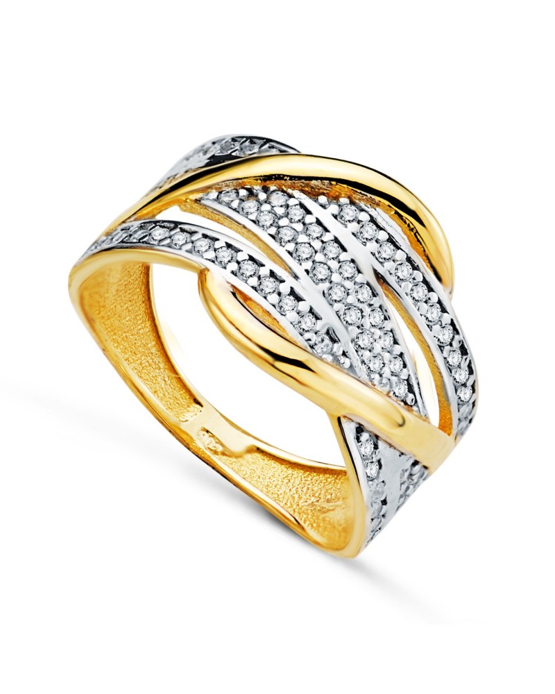 Sortija oro 18k bicolor circonitas ondas 12mm